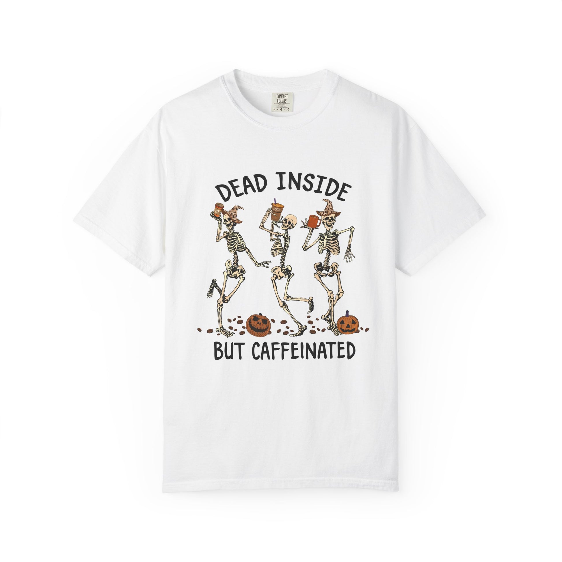 Introducing this playful Unisex Garment-Dyed T-shirt, perfect for adding a touch of humor to your daily wardrobe. Featuring a quirky skeleton design and the phrase "Dead Inside but Caffeinated," this tee captures a lighthearted vibe, ideal for coffee lovers and those who appreciate a witty twist. Whether you’re lounging at home or attending a casual gathering with friends, this shirt fits seamlessly into your lifestyle, bringing smiles and sparking conversations. It’s a great choice for Halloween celebrations, coffee enthusiasts' gatherings, or just as a fun everyday wear for anyone who enjoys unique fashion statements. Designed for adults, it’s a versatile reminder to embrace life’s little quirks while staying comfy and stylish.