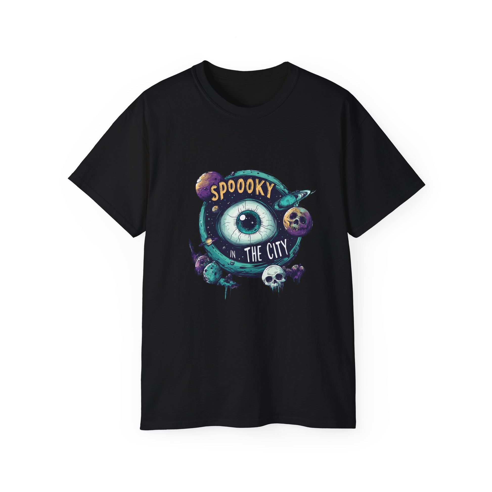 Spooky City Graphic Tee, Unisex Cotton T-Shirt for Halloween, Casual Wear, Graphic Art, Unique Gift, Trendy Style